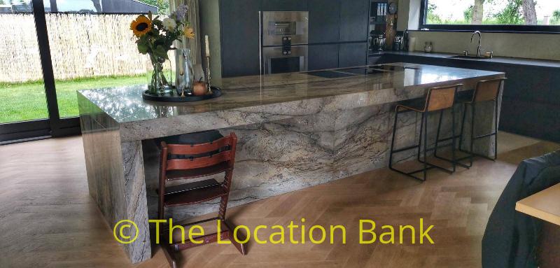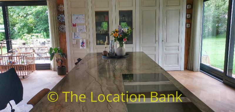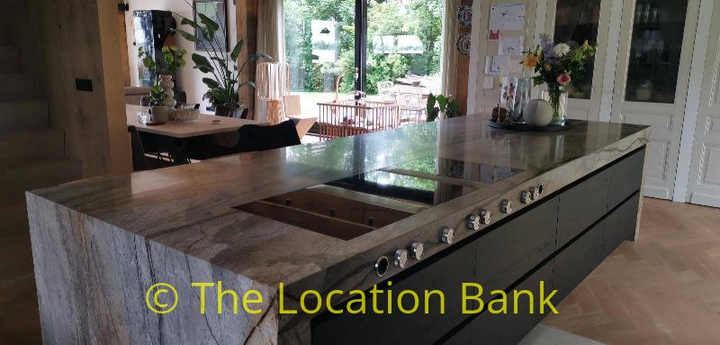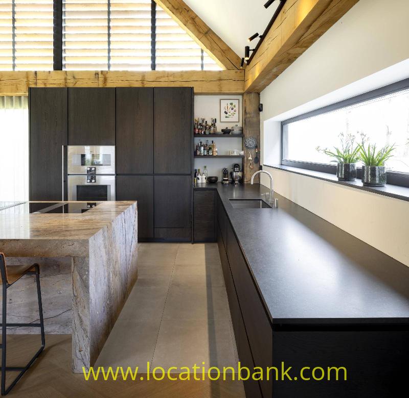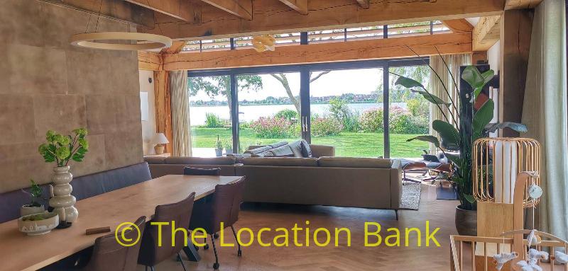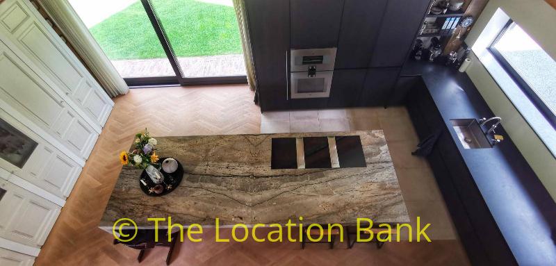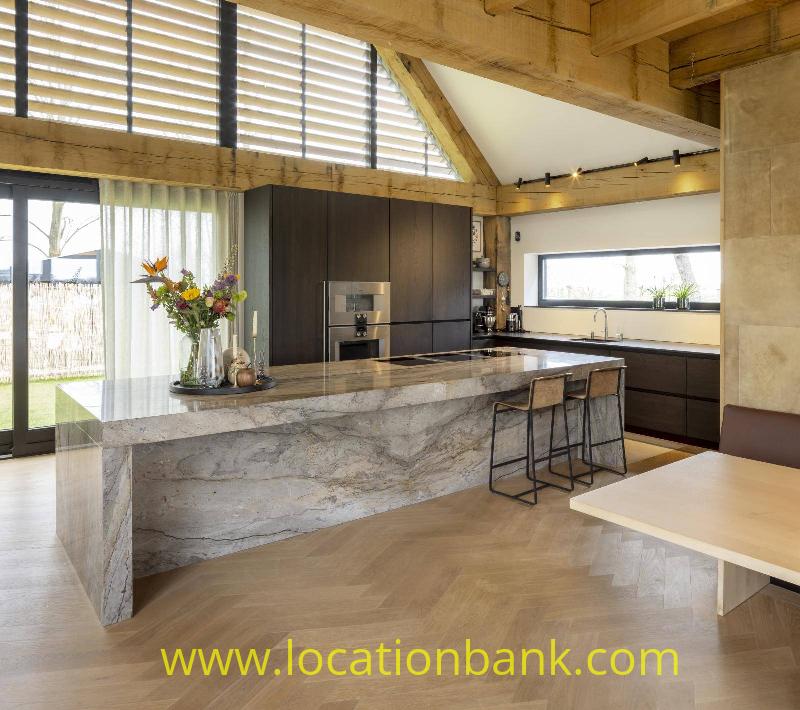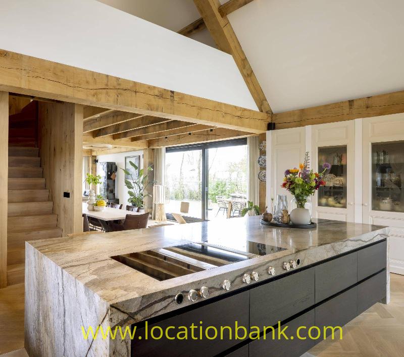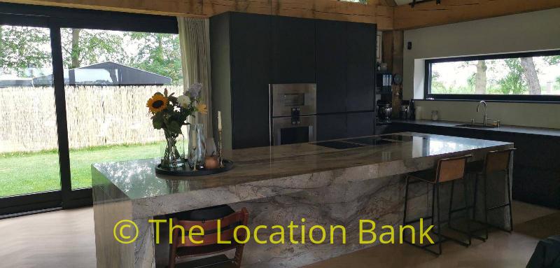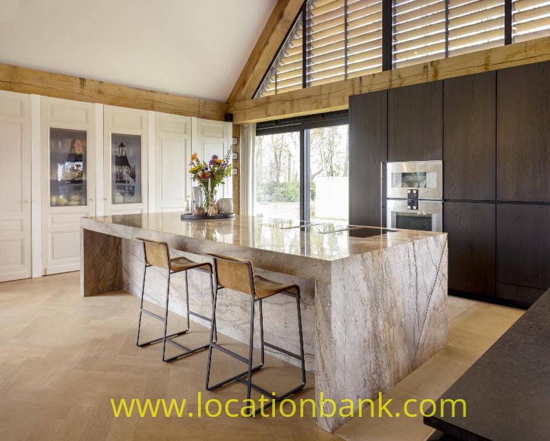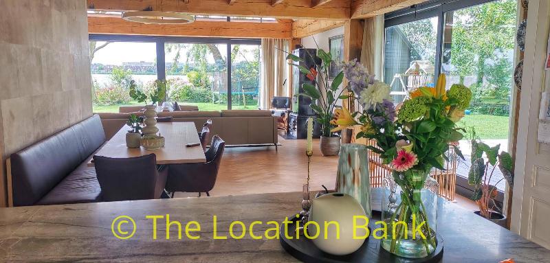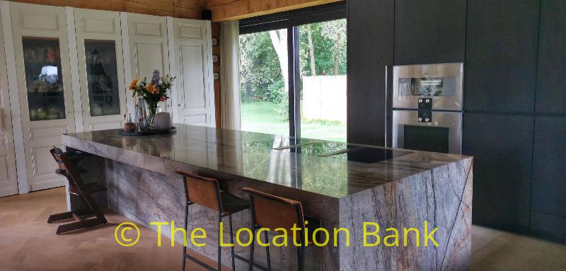 Villa with beautiful modern kitchen and island, on a lake. Waterfront villa