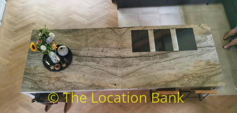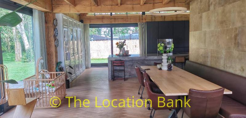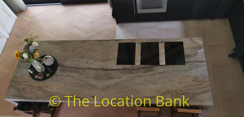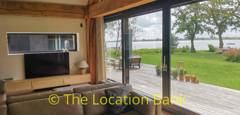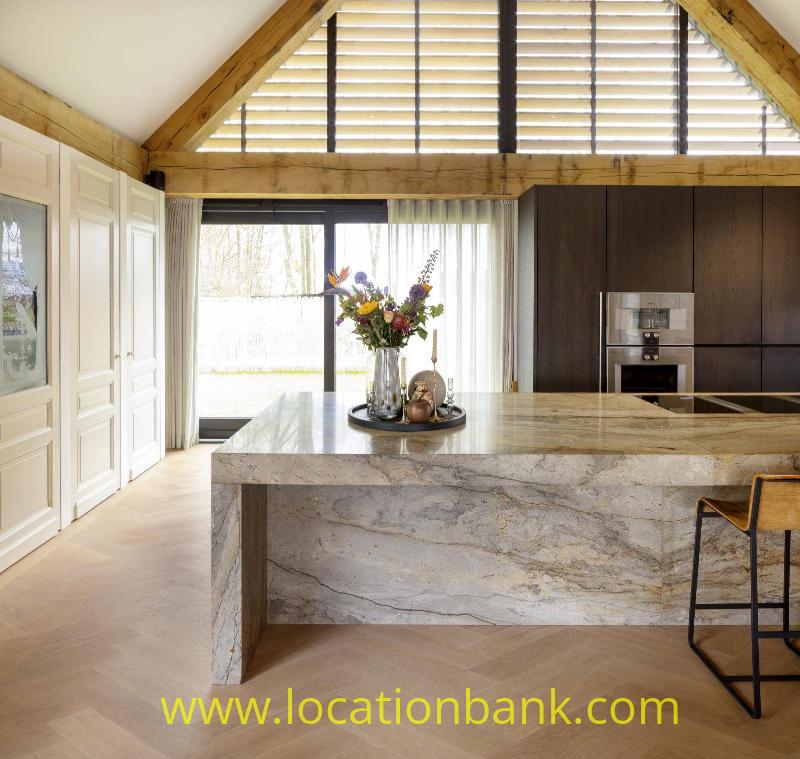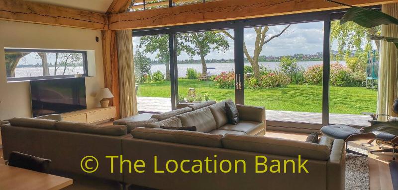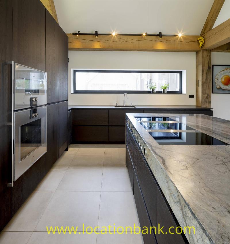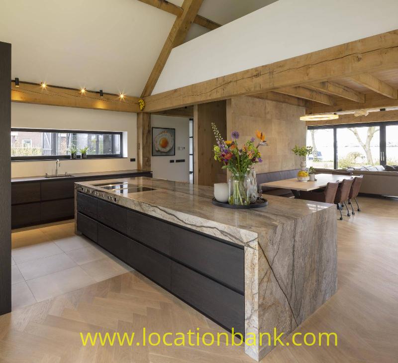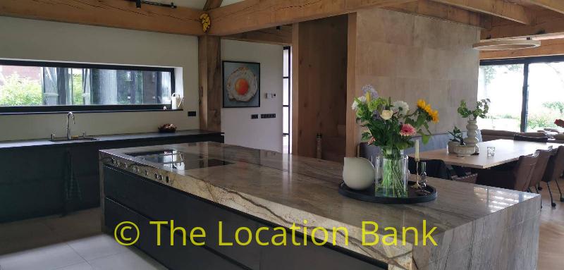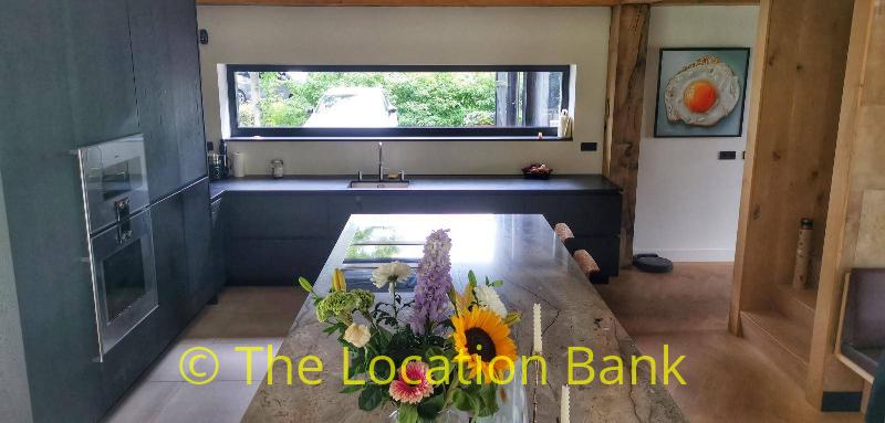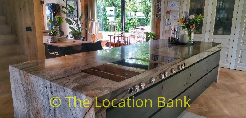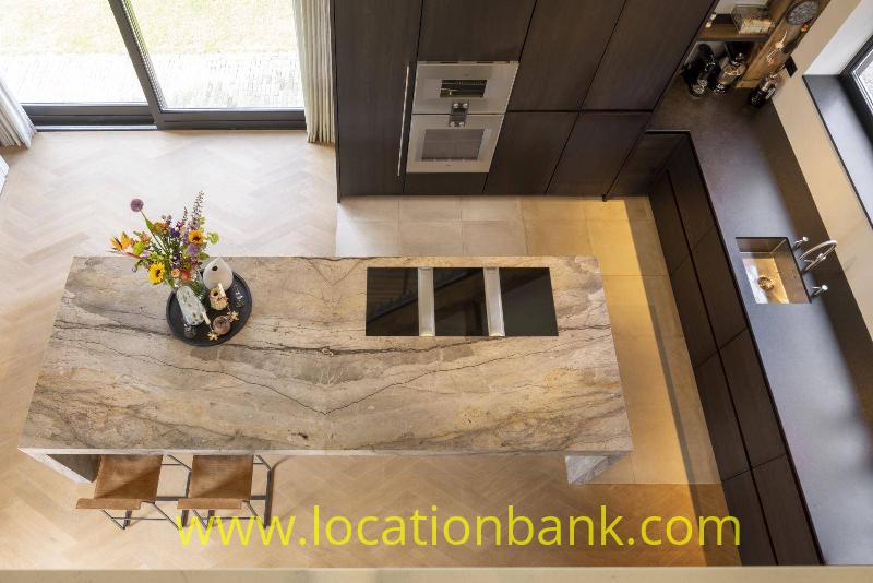Villa with beautiful modern kitchen and island, on a lake. Waterfront villa