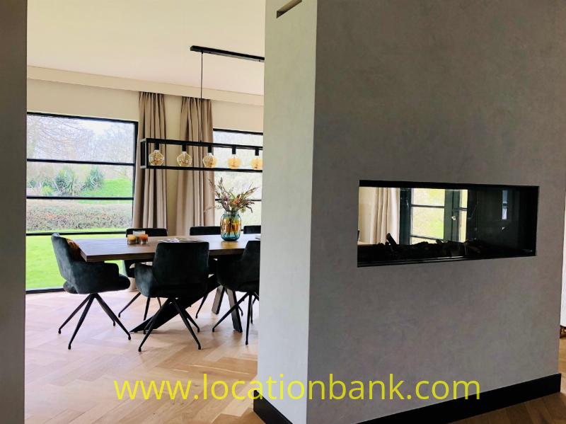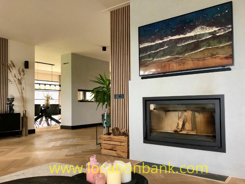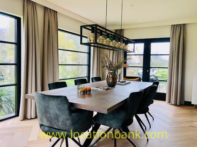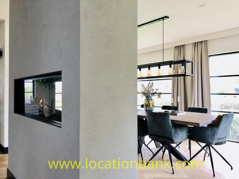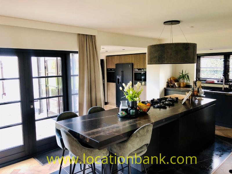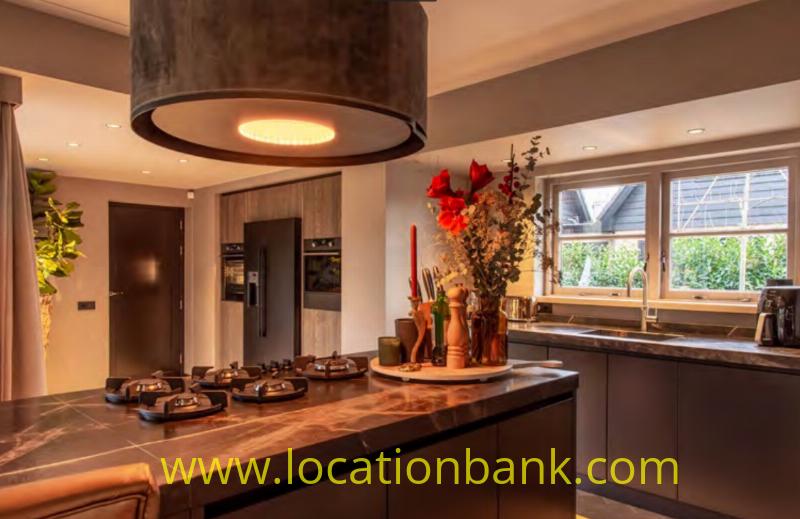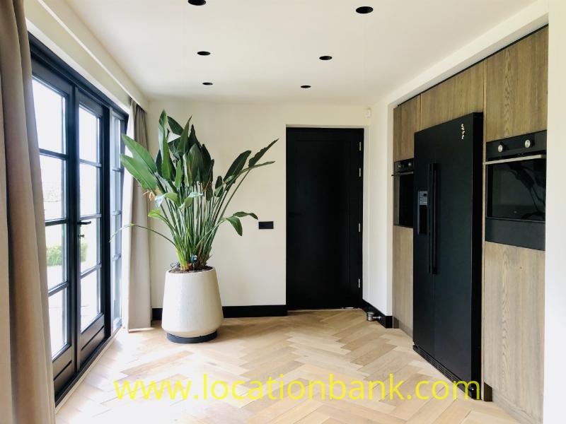 House modern house with wooden floor spacious garden on the water and kitchen island