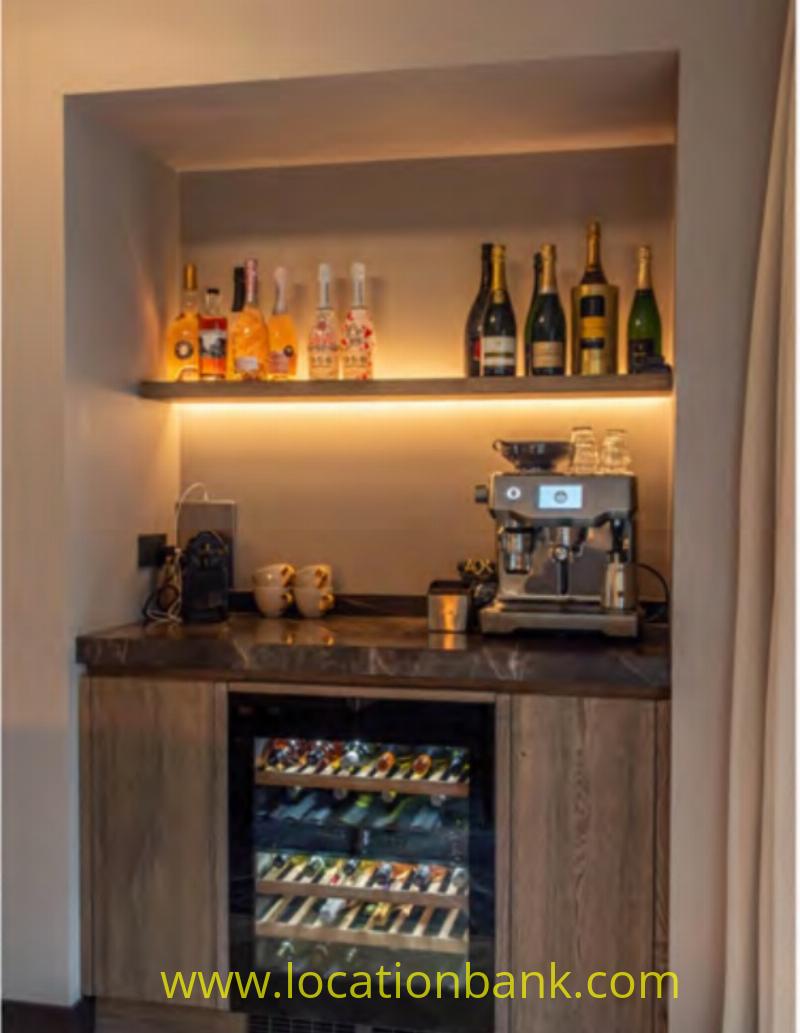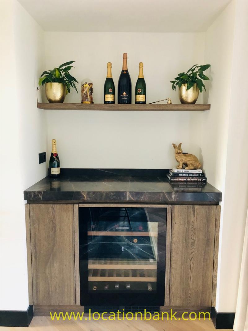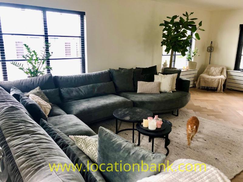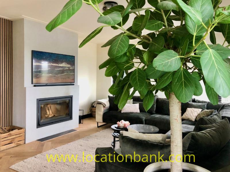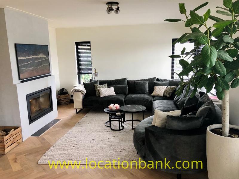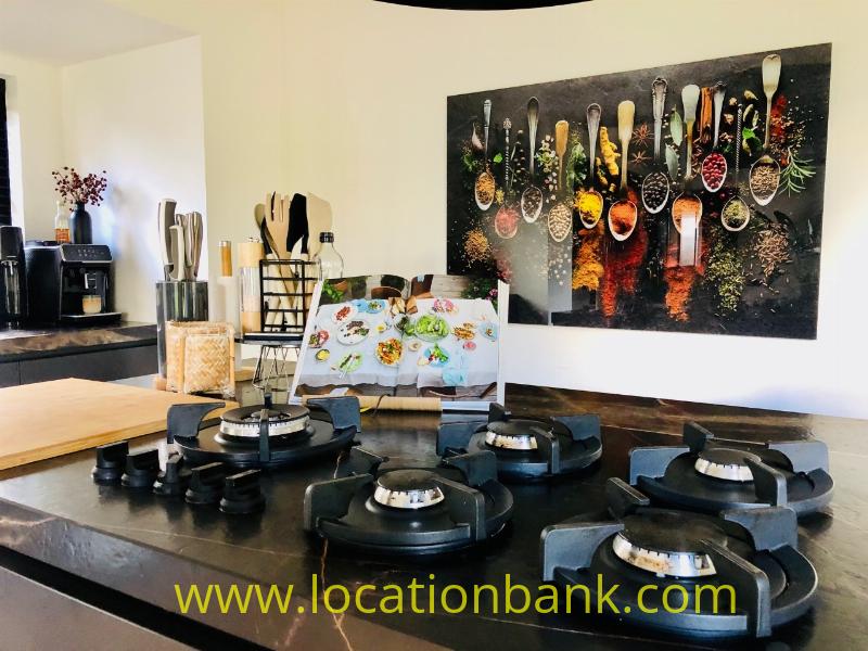 House modern house with wooden floor spacious garden on the water and kitchen island